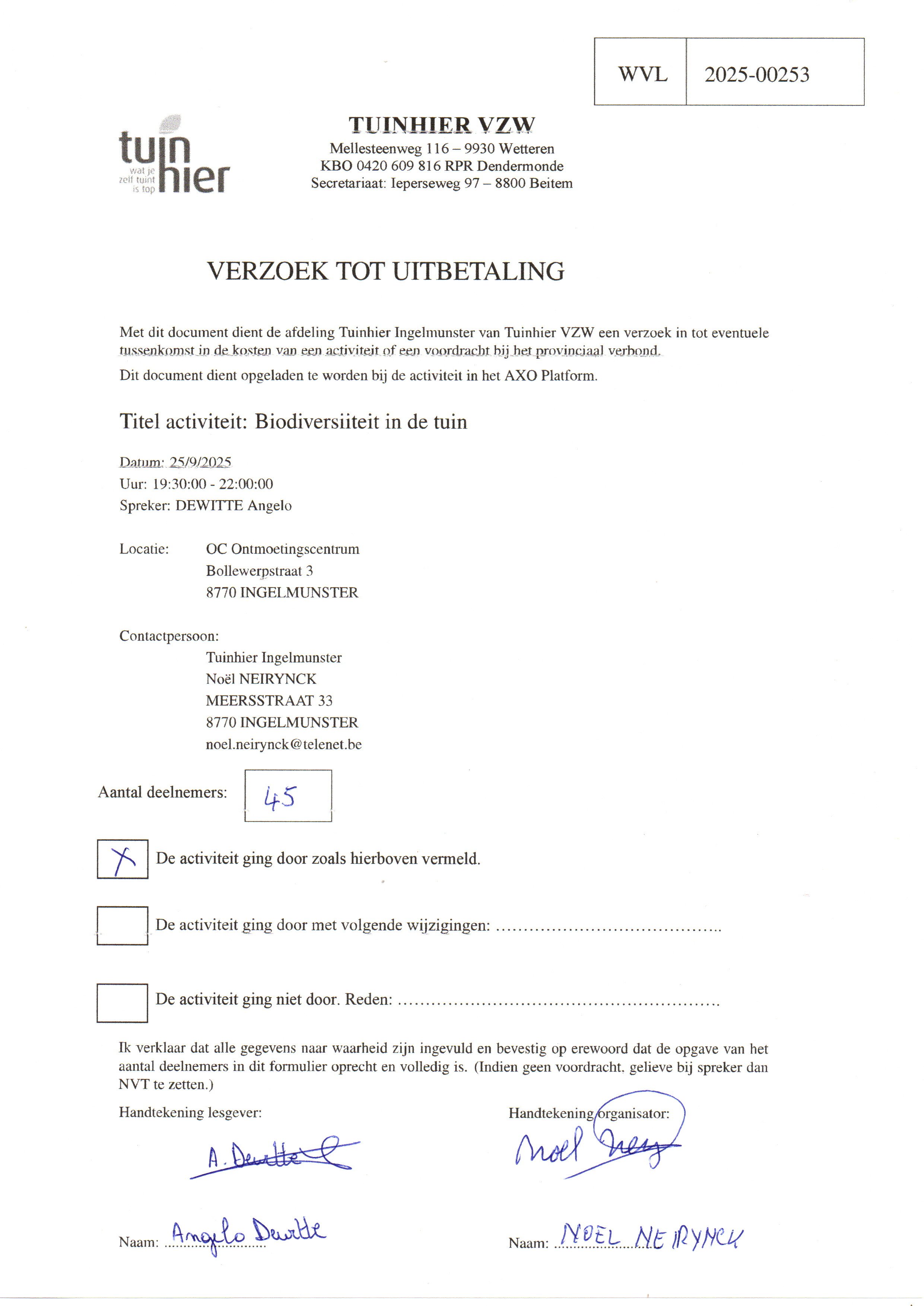 NEIRYNCK NoëlTel: 051489331Email: noel.neirynck@telenet.be